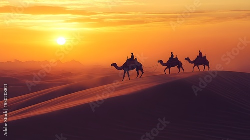 Towering sand dunes camel caravan desert sunset lone oasis realistic 3D sand dunes warm golden hour lighting soft diffused edges