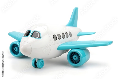 Toy airplane icon isolated on white background, blue and white plane