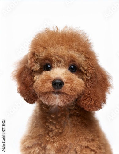 トイプードルのポートレート(Toy Poodle puppy portrait on white background)