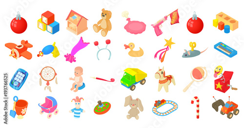 Toys icon set, cartoon style
