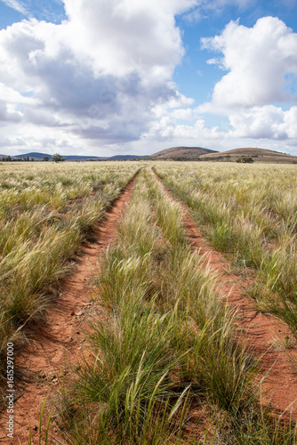 track through native grasses in an outback landscape