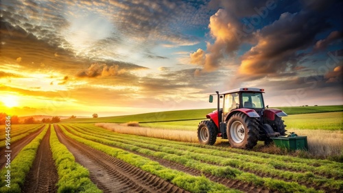 Tractor driving through rural field, agriculture, farm, landscape, farming, vehicle, machinery, rural