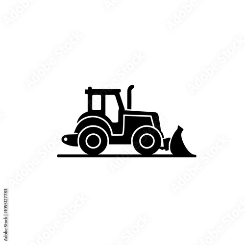 Tractor Icon, Black Line Art, Farming and Agriculture Tool