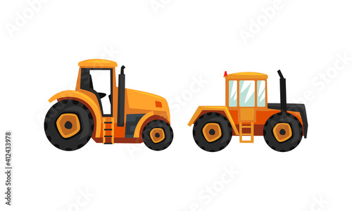 Tractors Agricultural Machinery Set Flat Vector Illustration
