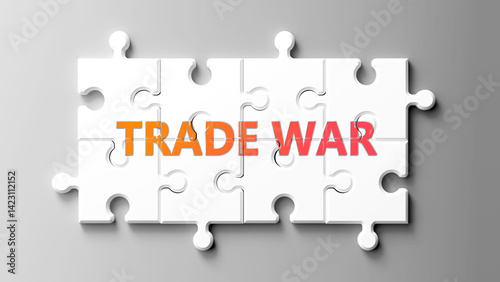 Trade War complex like a puzzle - pictured as word trade war on a puzzle pieces to show that trade war is complex and needs cooperating pieces that fit together. ,3d illustration