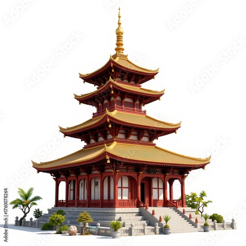 Traditional Asian Pagoda Surrounded by Lush Greenery and Plants