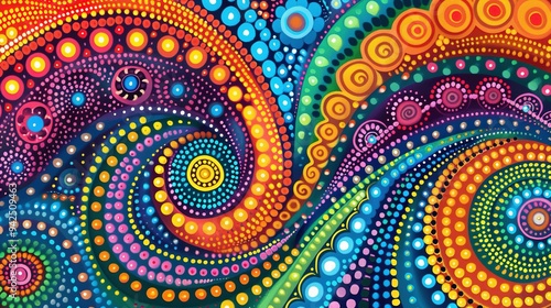 Traditional Australian Aboriginal Dot Painting Style Art in Bright Colors