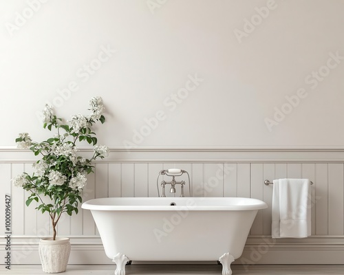 Traditional bathroom with wainscoting, porcelain sink, and neutral color scheme, timeless elegance