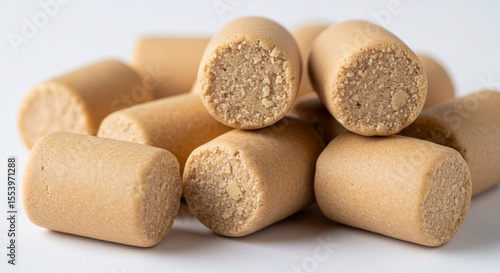 Traditional Brazilian Peanut Candy Paçoca Isolated on White Background