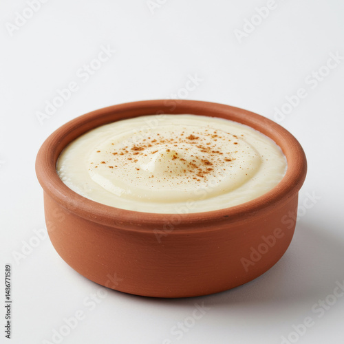 Traditional Brazilian Sweet Corn Pudding (Curau) with Cinnamon in a Clay Pot