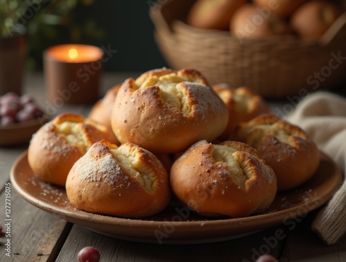 Traditional bread on a wooden table during Imsak, soft dawn light, calm and rustic atmosphere, symbolizing fasting preparation