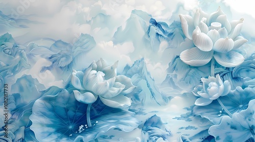Traditional Chinese jade lotus landscape painting illustration poster background