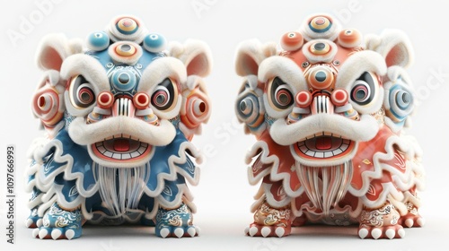 Traditional Chinese New Year lion dance costume, isolate on white background, colorful and detailed, festival attire,