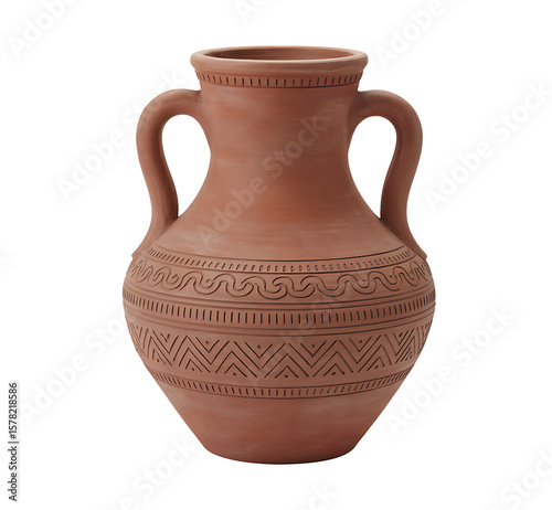 Traditional Clay Pot with Handles and Engraved Patterns Isolated on Transparent Background. High quality PNG file