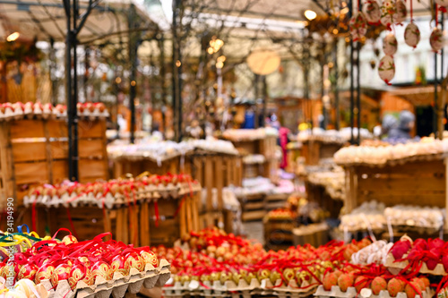 Traditional Easter market with colorful and painted easter eggs in Vienna Austria