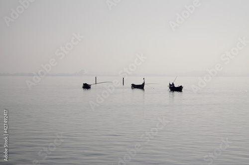 Traditional fishing boats during toil
