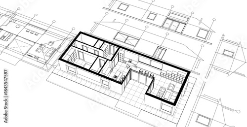 traditional house sketch plan 3D illustration