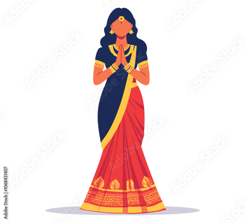 Traditional Indian Woman Performing Namaste Gesture in Sari, Cultural Greeting