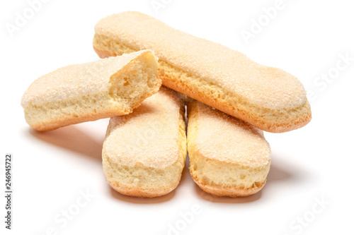 Traditional Italian Savoiardi ladyfingers Biscuits on White Background