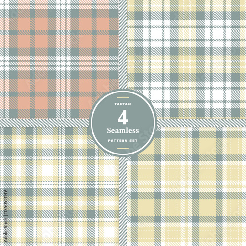 Traditional Madras Red and Vivid Poppy Seamless Tartan Fabric Design Set of 4