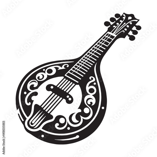 Traditional Mandolin silhouette, timeless string tone – Mandolin illustration – Minimalist Mandolin vector – Musical instrument silhouette