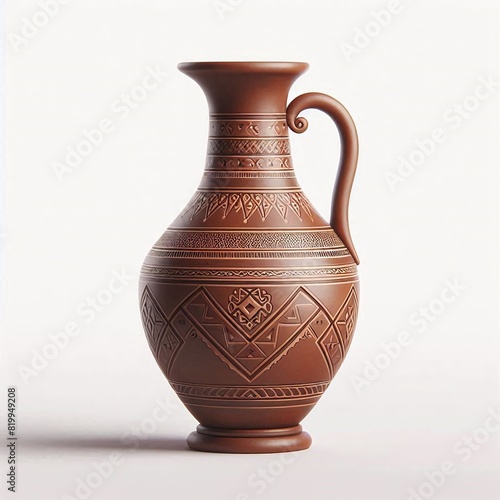 Traditional Moroccan Clay Jug with Geometric Carvings