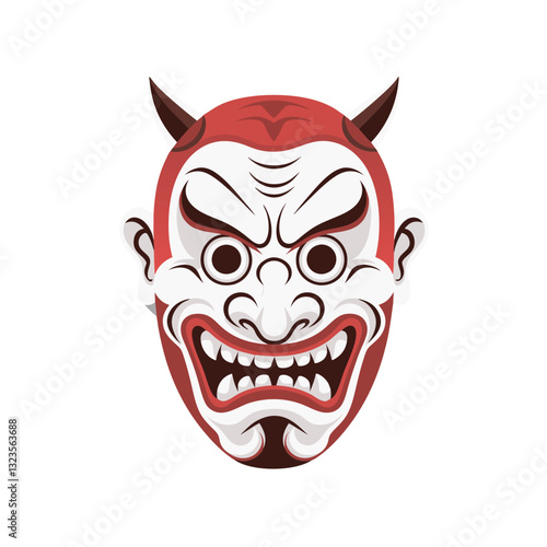 Traditional Oni Mask Illustration Japanese Demon Face Art Vector
