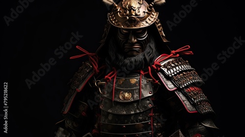 Traditional samurai standing proudly in full armor. Japanese aesthetics, cosplay, costume, fighter, plate armor, antiquity, lone warrior. Military concept. Generative by AI