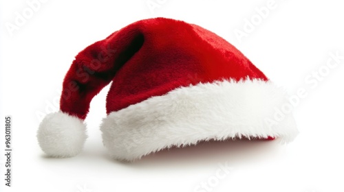 Traditional Santa hat resting neatly on a clean white background, showcasing the classic holiday symbol.
