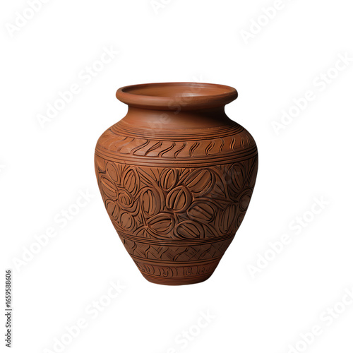 Traditional Terracotta Vase with Intricate Carved Floral and Leaf Motifs on a Natural Matte Finish