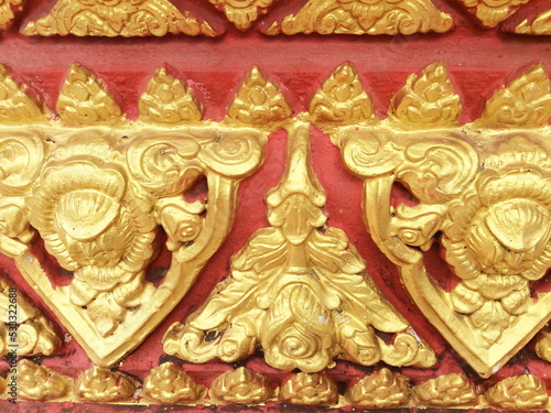 Traditional Thai style stucco on the wall of church in temple, Thailand.