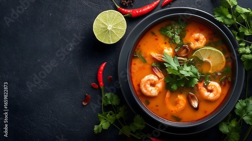 Traditional Thai Tom Yum Soup with Shrimp and Fresh Herbs