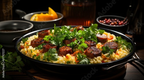Traditional Turkish Pilav in a bowl, close-up. Created with generative AI.