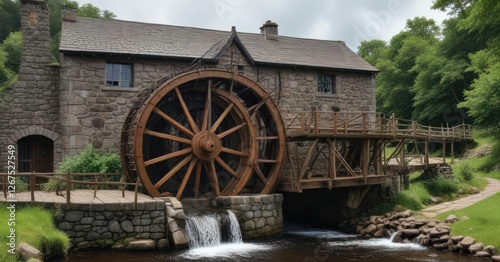 Traditional water wheel outside whisky distillery on Isle of Arran, distillery, industry, traditional, Scotland, Isle of Arran