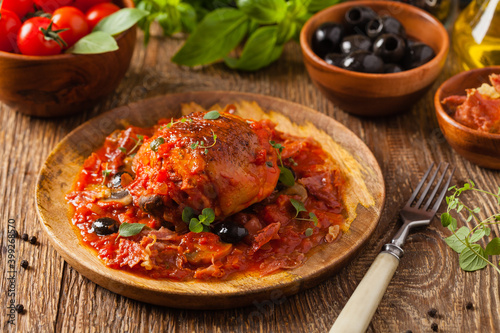 Traditionally made chicken in tomato sauce cacciatore.