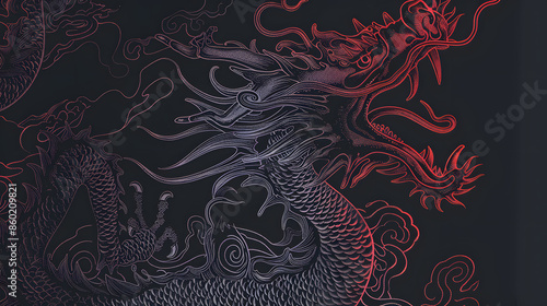 Traditioneller Chinesischer Drache, dunkler Drachen Hintergrund, Chinesische Kunst, altertümliche Kreatur, Chinesische Geschichte