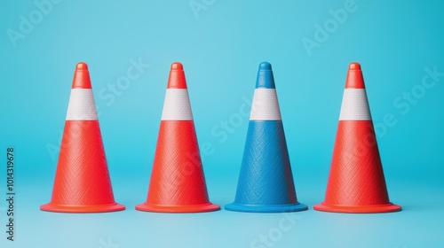 Traffic Cones Blue Orange Minimalist Design Safety Alert Concept