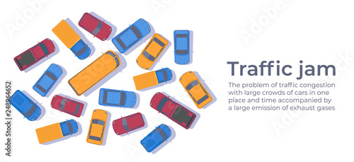 Traffic jam. Large congestion of cars. Web banner or poster design template.