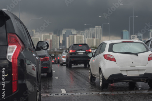 traffic jam with row of cars