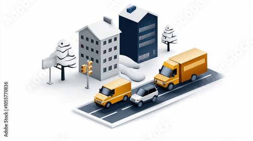 Traffic scene with cars and buildings.