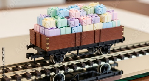 Train carrying gifts miniature presents christmas holiday