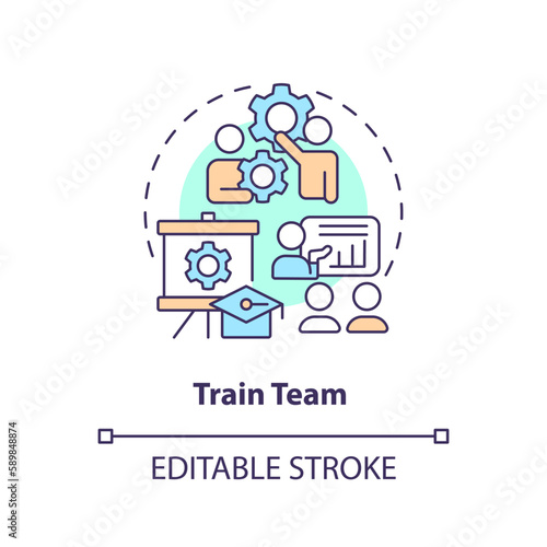 Train team concept icon. Time reduction. Increase productivity. Coaching employees abstract idea thin line illustration. Isolated outline drawing. Editable stroke. Arial, Myriad Pro-Bold fonts used