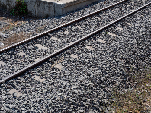 Train tracks Background nature green,Blue sky Beautiful,On Floor Scree Stone