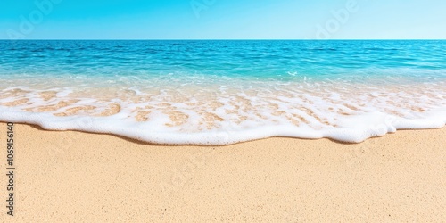 Tranquil Beach Scene with Clear Blue Skies and Waves