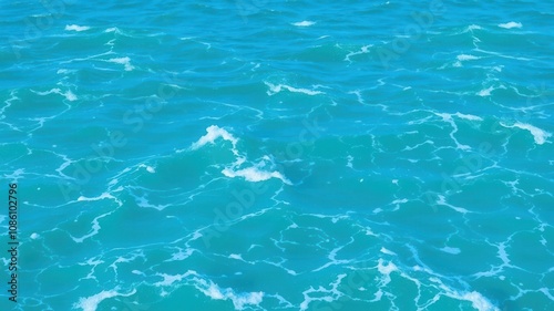 Tranquil blue turquoise ocean water with foamy waves, ocean, serene