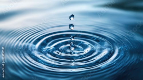 Tranquil blue water surface with gentle ripples and droplets symbolizing freshness purity and calm inviting peaceful reflections and text space