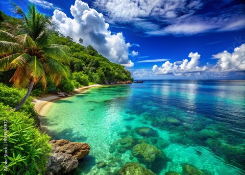 Tranquil Caribbean Ocean View with Crystal Clear Waters and Lush Tropical Surroundings in Paradise