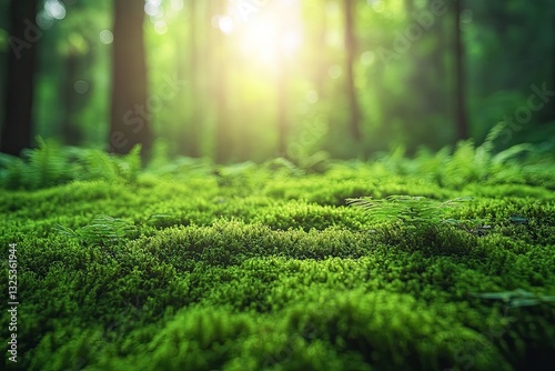 Tranquil Forest Ground with Ferns in Dappled Light, Macro Vegetation Details for Nature-Inspired Product Packaging