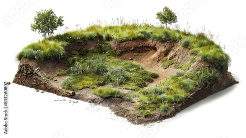 Tranquil Isometric Meadow with Rabbit Burrow Cross-Section in Octane Render Isolated on White Background