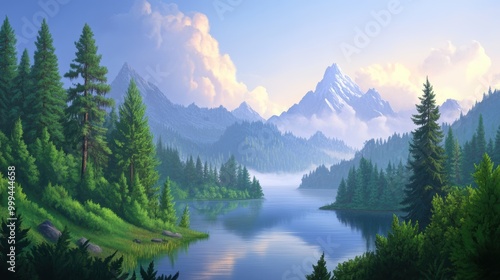 Tranquil Mountain Lake Landscape
